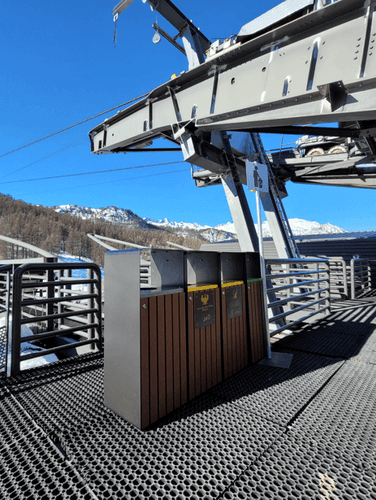 Dans le cadre du programme « Montagne propre », la collectivité avant besoin de contenants de tri qui combinent plusieurs caractéristiques : perdurer durablement dans un climat hostile, porter des consignes de tri claires, s’intégrer parfaitement dans les espaces naturels.