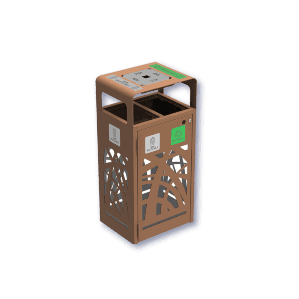 Pensée pour le milieu urbain, Cybel allie esthétique et résistance pour offrir une solution de tri aussi élégante que durable. Son design moderne et soigné s’intègre parfaitement dans les espaces publics, zones piétonnes ou abords de bâtiments tout en favorisant un tri sélectif clair et accessible à tous. Compacte, elle permet le tri des emballages et du non recyclable en optimisant l'espace occupé.