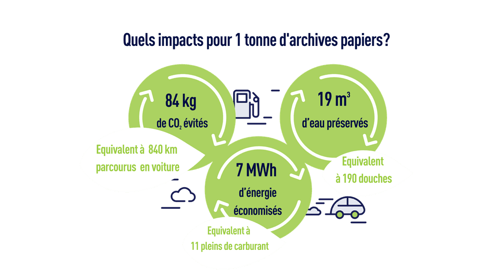 Le broyat est recyclé chez l'un de nos papetiers partenaires.